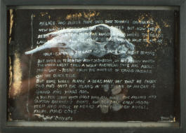 Acrylic and text on rigid sandpaper