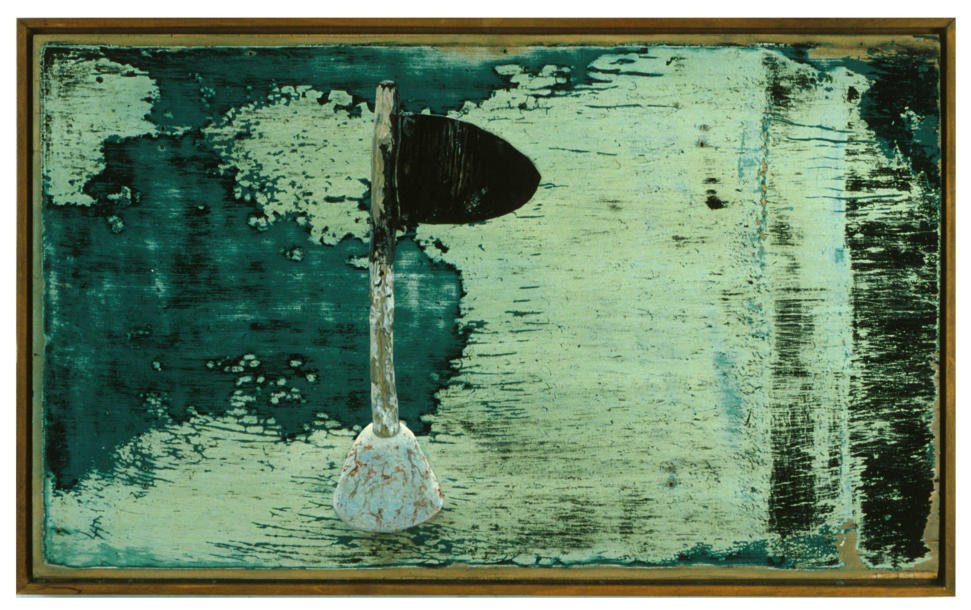 acrylic on found wood